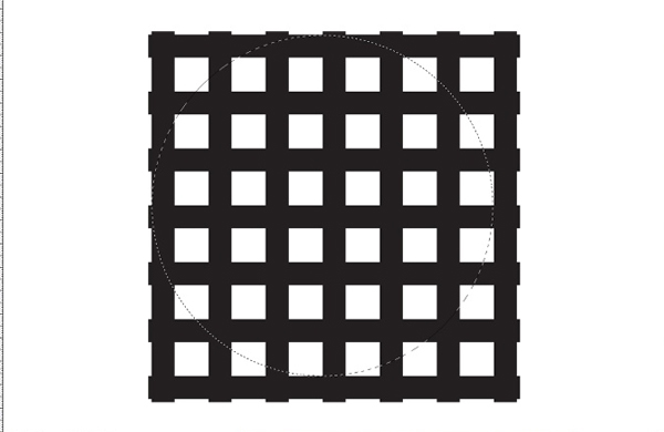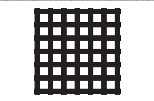 Откройте Photoshop, а затем с помощью Rectangle Tool (U) создайте прямоугольник, а затем дублируйте его, пока не получите 7 столбцов. Используйте Distribute Horizontal Centers, чтобы сделать расстояние между столбцами одинаковым. После этого дубликат этих 7 прямоугольников поверните для создания сетки. Получим: