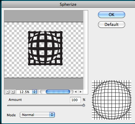 Перейдите в Filter> Distort> Spherize. Выставьте следующие параметры: