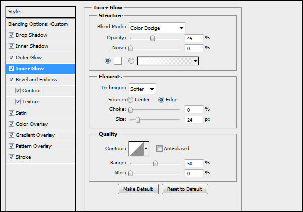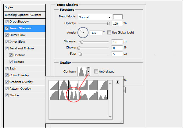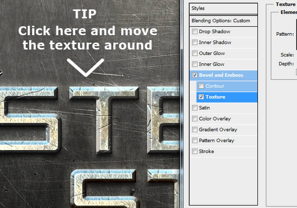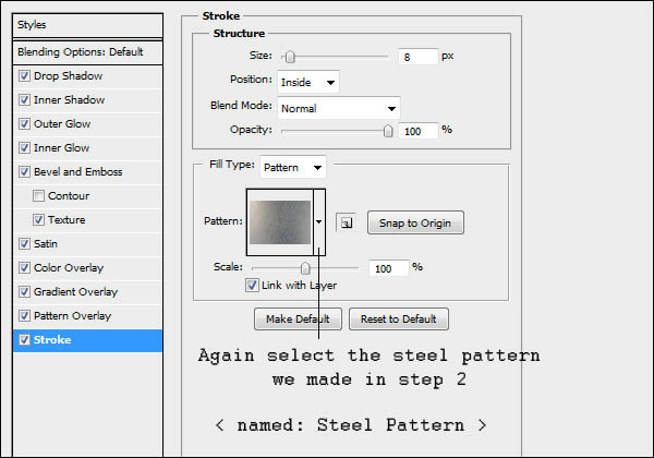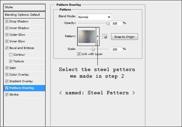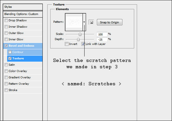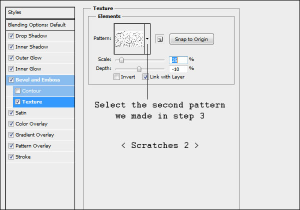 Теперь применим новые стили слоя на этот слой. Мы сделаем царапины на сталь и еще добавим несколько теней.