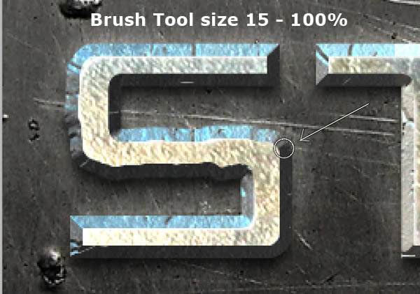 Немного подрисуйте буквы с Brush Tool. Вы получите эффект как на рисунке ниже. Сделайте это для всех букв.