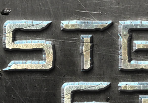 Ваш стальной текст! В этом шаге я покажу вам вам, как сделать стиль стали более реалистичным. Сделайте копию STEEL STYLE слоя невидимой.