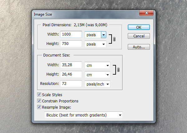 Теперь будем делать текстуру стали. Откройте текстуру металла2 в Photoshop. К Image> Image Size и примените параметры, как показано ниже. Теперь идите в Edit> Define Pattern дайте имя текстуре Steel Texture и нажмите ОК. Выходите из этого документа и возвращайтесь к документу, начиная с
