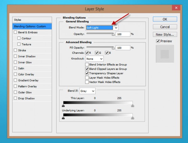 Установите режим смешивания этого нового слоя на «Мягкий свет»: