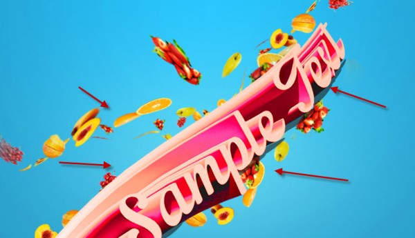 В этом уроке, я покажу вам процесс создания 3D текстовый эффекта в Photoshop с добавлением свежих фруктов. Вы узнаете несколько трюков, чтобы сделать красивый и уникальный 3D-эффект текст и расположить различные фрукты вокруг него. Мы будем использовать ряд фильтров добавим некоторые дополнительные эффекты для нашего текста.